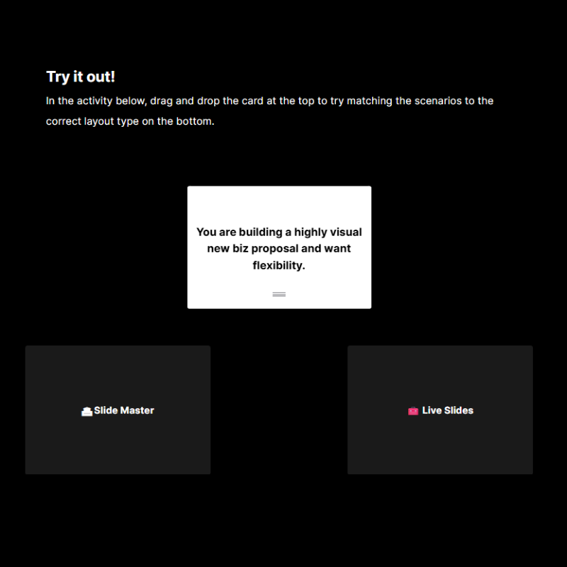 The module explains the difference between Slide Master layouts and Live Slides, helping learners understand how to structure branded presentations correctly.